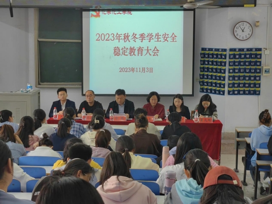 11月3日,金年会jinnianhuicom在教四101召开2023年秋冬季员工安全稳定教育大会。公司党委书记郭鹏、副书记曲剧,专职组织员冷向宇,辅导员赵方方、严赫、翟成辉出席会议,各班班长团支书、员工会成员共同参加。