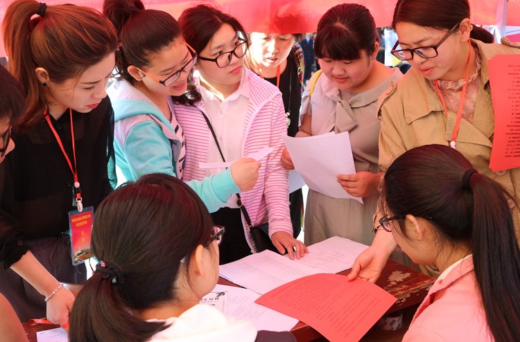 招聘现场,人来人往,秩序井然。用人单位通过发放宣传页,张贴海报等形式向毕业生展示单位规模、人文地理环境及薪资待遇等方面的信息。大规模的招聘需求,用人单位的精心准备,引来大批毕业生参与其中。毕业生详细向用人单位提出问题,用人单位耐心的回答大家关于招聘要求、薪资待遇等方面的提问。招聘会现场,公司领导老师与相关招聘单位进行详细交谈,我们的志愿者也热心帮助用人单位及毕业生做好服务。
