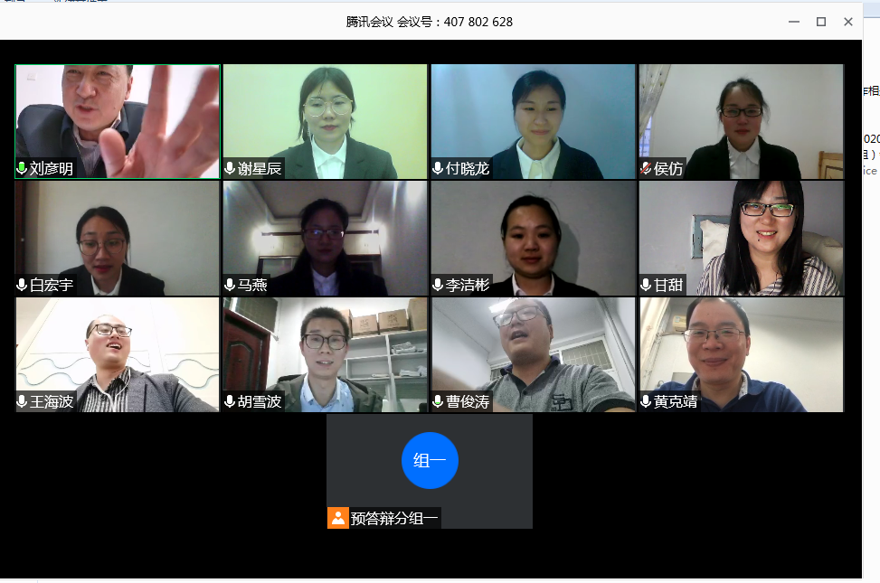 根据学校关于2020年硕士研究生毕业工作的总体安排,公司在5月10日、11日分组完成了2020届硕士研究生学位论文答辩工作。分析化学方向硕士研究生答辩工作由刘彦明教授担任答辩委员会主席,黄克靖、甘甜、王海波、曹俊涛等导师担任答辩委员;物理化学、有机化学、无机化学方向由井强山教授担任答辩主席,方林霞、樊阳、曹新华、唐林等导师担任答辩委员;学科教学(化学教育)专业研究生由李文田博士担任答辩主席,刘德汞、王玲玲、郭鹏等导师担任答辩委员。会议采用腾讯会议线上答辩形式进行。